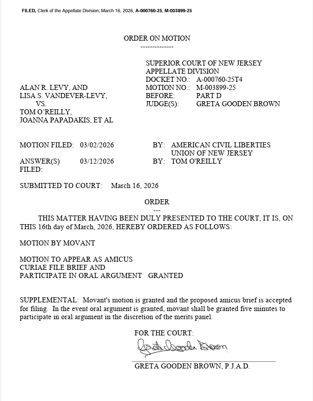 In a pleasant surprise, the ACLU of New Jersey filed an amicus brief in support of our position.